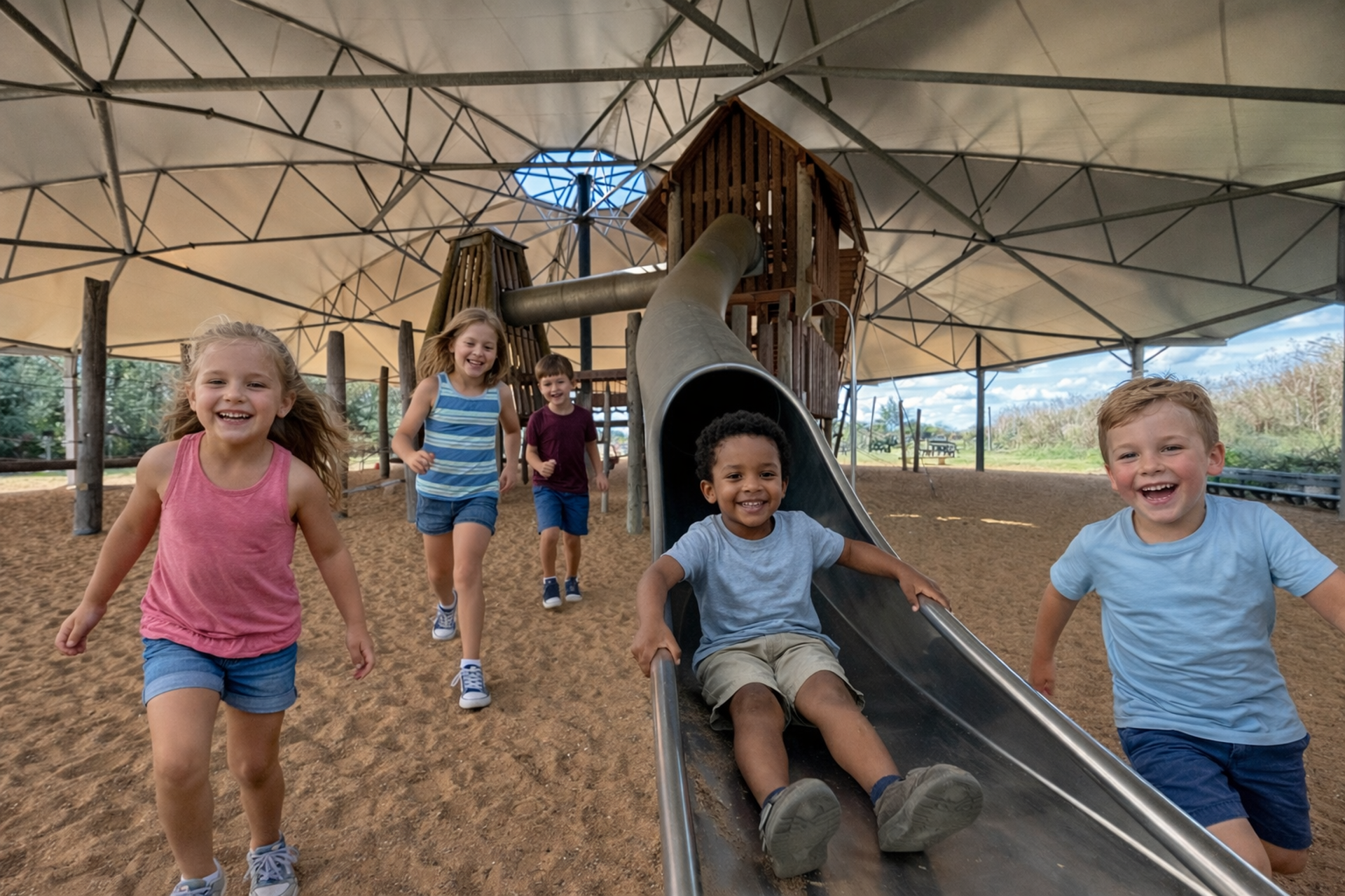 Hasty’s Adventure Farm is a true gem on the Essex coast. We have acres of outdoors space for families to enjoy and make memories together. There is lots of play to be had, including pedal go karts, grass sledges, ride on tractors for toddlers, den building, giant Lego bricks, sand and water play, hobbit huts and for older children, a huge undercover wooden adventure zone….in fact it sits under the largest canopy in Essex!